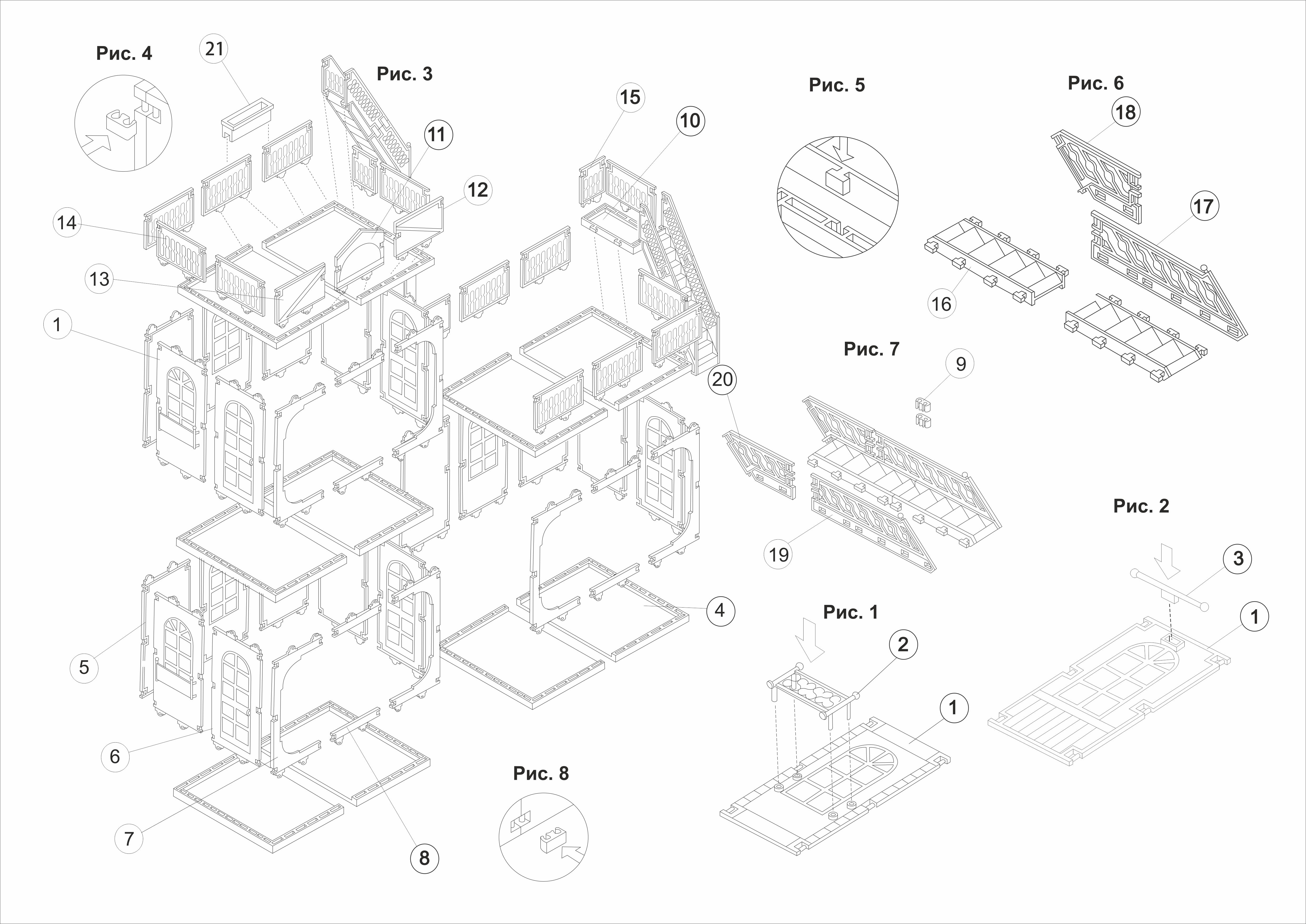 Игрушка собирается взрослым и предназначена для игры с куклами высотой до 30 см. Перед сборкой проверьте наличие всех деталей по перечню. При наличии следов от литников и облоя, удалите их ножницами.