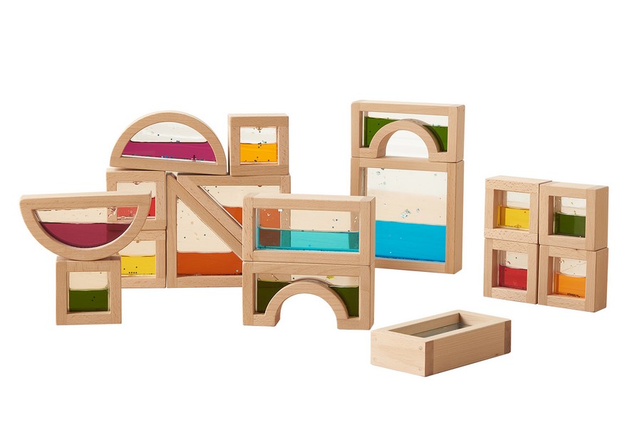 Эти сенсорные блоки, заполненные разноцветным песком внутри, обязательно заинтересуют детей. В процессе постройки различных конструкций, дети могут наблюдать, как песок пересыпается внутри блоков.