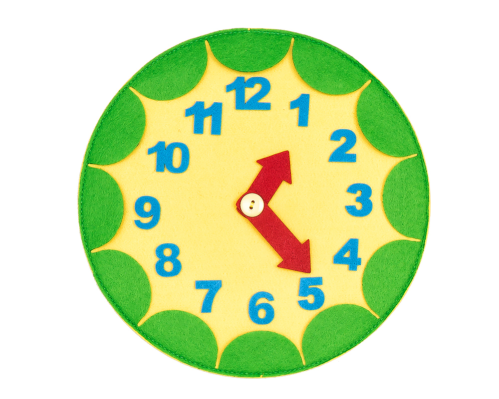 2. Обсудите, что обозначают синие цифры. Перемещая маленькую стрелку по циферблату, потренируйтесь с ребенком называть час, который она показывает. При этом можно обсудить, чем занят ребенок по часам в течение дня: просыпается, завтракает, играет, обедает, гуляет на улице, ужинает, спит и т.п.