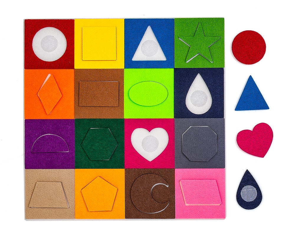1. Подбирайте фигуркам подходящие по форме и цвету рамки и прикрепляйте их на липучку;