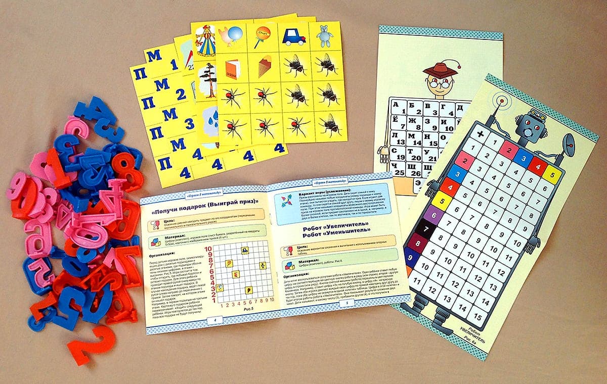 Назначение игрового пособия «Играем в математику» – освоение детьми цифр и умение применять их в игровой и результативной деятельности. Подробнее