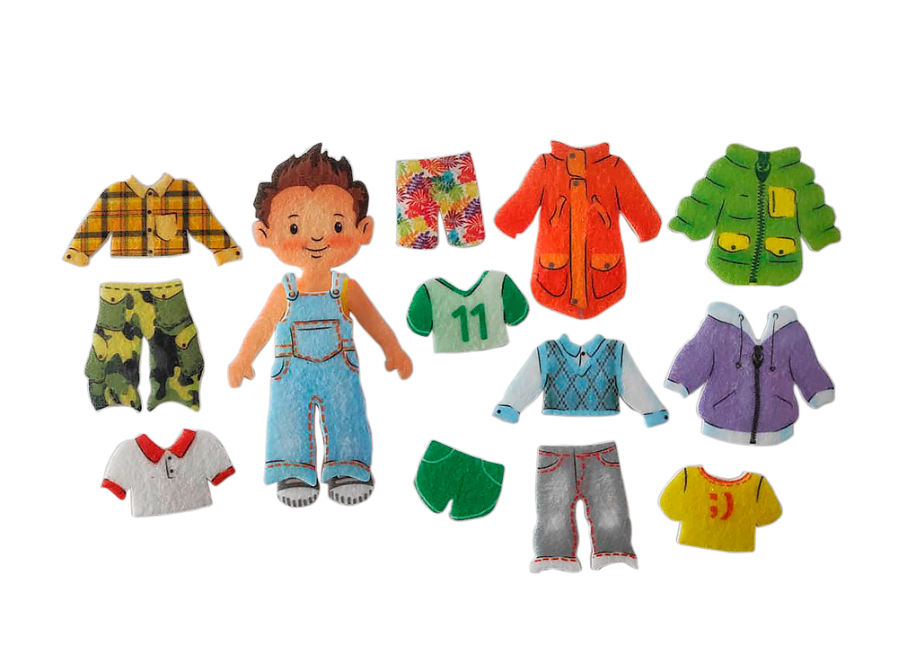 1. Рассмотрите содержимое набора вместе с ребенком. Спросите ребенка, какая одежда подходит для лета? Какую одежду носят зимой, весной, осенью?