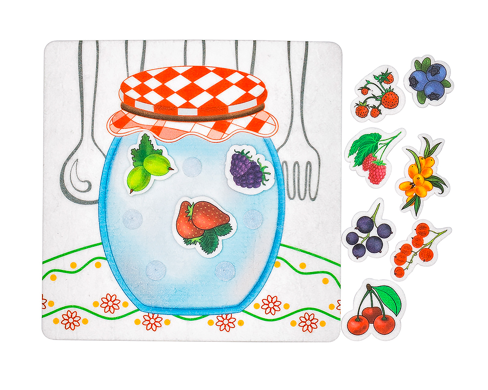 2. Игра «Готовим по рецепту». Предложите ребенку посчитать, сколько всего видов ягод в наборе? Попросите сварить варенье «Ягодное ассорти» из любых 3, 5, 9 ингредиентов. Попросите ребенка приготовить ягодный компот по рецепту.