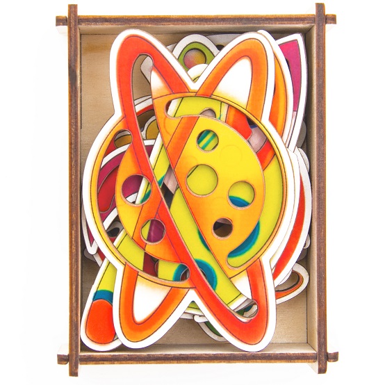 Набор трафаретов и деревянной коробочки для их хранения. Коробочку можно дополнительно использовать как материал для игры, разбирать и складывать обратно, развивая логику и мелкую моторику. В наборе присутствуют детали: звезда, комета, планета Сатурн, планета Марс, Солнце, ракета, летающая тарелка НЛО и космический самолёт.