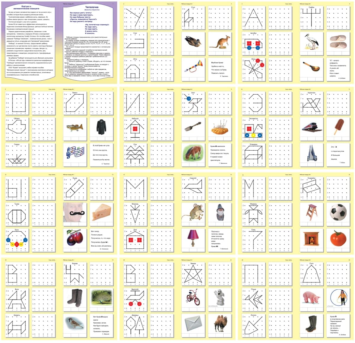 Учусь читать. Тетрадь 1 (грамота на математическом планшете). Математический планшет становится полем для исследований ребенка, реализации его собственных идей. Кратко возможности планшета можно разделить по трем направлениям: Подробнее