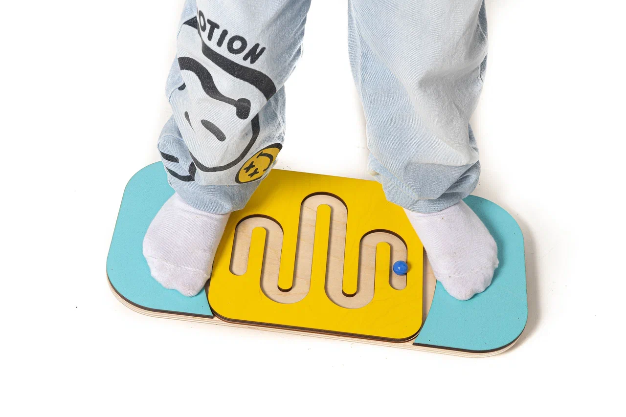 Баланс борд со сменными лабиринтами для ног – замечательный тренажер для детей, который применяется в мозжечковой стимуляции. Доска балансир способствует развитию вестибулярного аппарата ребенка. Заниматься на нем не просто, но очень интересно и увлекательно! Сменные вкладыши- лабиринты делают занятия на доске-балансире разнообразными. В данном комплекте их 4 шт. Доска-балансир с лабиринтом прекрасно подойдет для занятий детям от 3 до 10 лет.