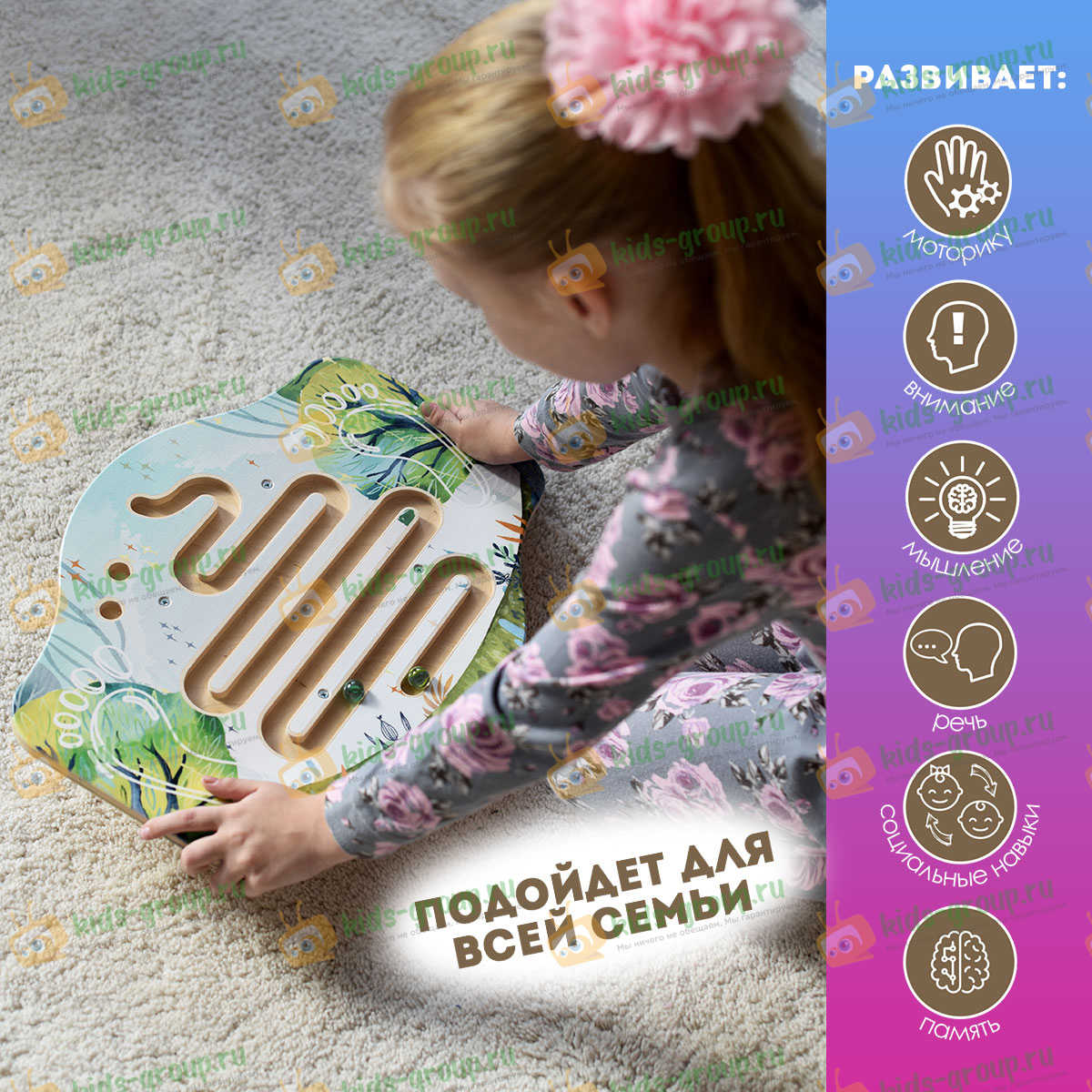 Тренажёр изготовлен из высококачественной березовой фанеры, тщательно отшлифован, имеет прямую печать по дереву, покрыт лаком.