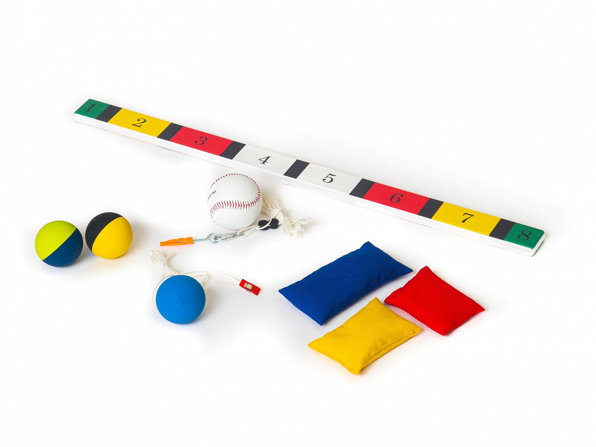 1 мяч-маятник с креплением к потолку (2 вида крепления) 1 планка для отбивания цветная с цифрами;