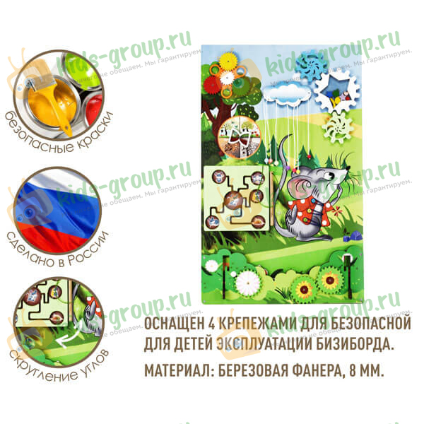 Бизиборд МЫШКА-НОРУШКА даёт возможность обыграть сюжеты 3 сказок, где есть медведь: Теремок, Репка, Курочка Ряба.ТМ "Рыжий Тим"
