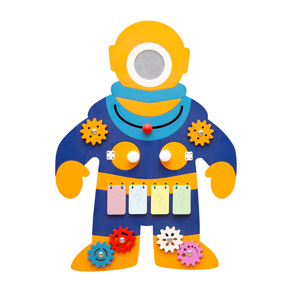 Самая загадочная профессия в нашей серии бизибордов — водолаз. Это смельчаки, которые не боятся погружаться на самое дно океана. Вот отличное начало для рассказа дошкольникам о профессии, который их непременно заинтересует. Развитие словарного запаса невозможно без введения в обиход новых сложных понятий и формирования устойчивого интереса к исследованию окружающего мира. Работа водолаза в том случае — идеальный пример для подражания, изучения, обсуждения. Подробнее