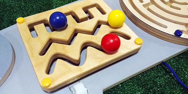 Бизиборд для детского сада. На панели расположены развивающие элементы по различным направлениям (мелкая моторика, тактильное восприятие, память, концентрация и т.д.).