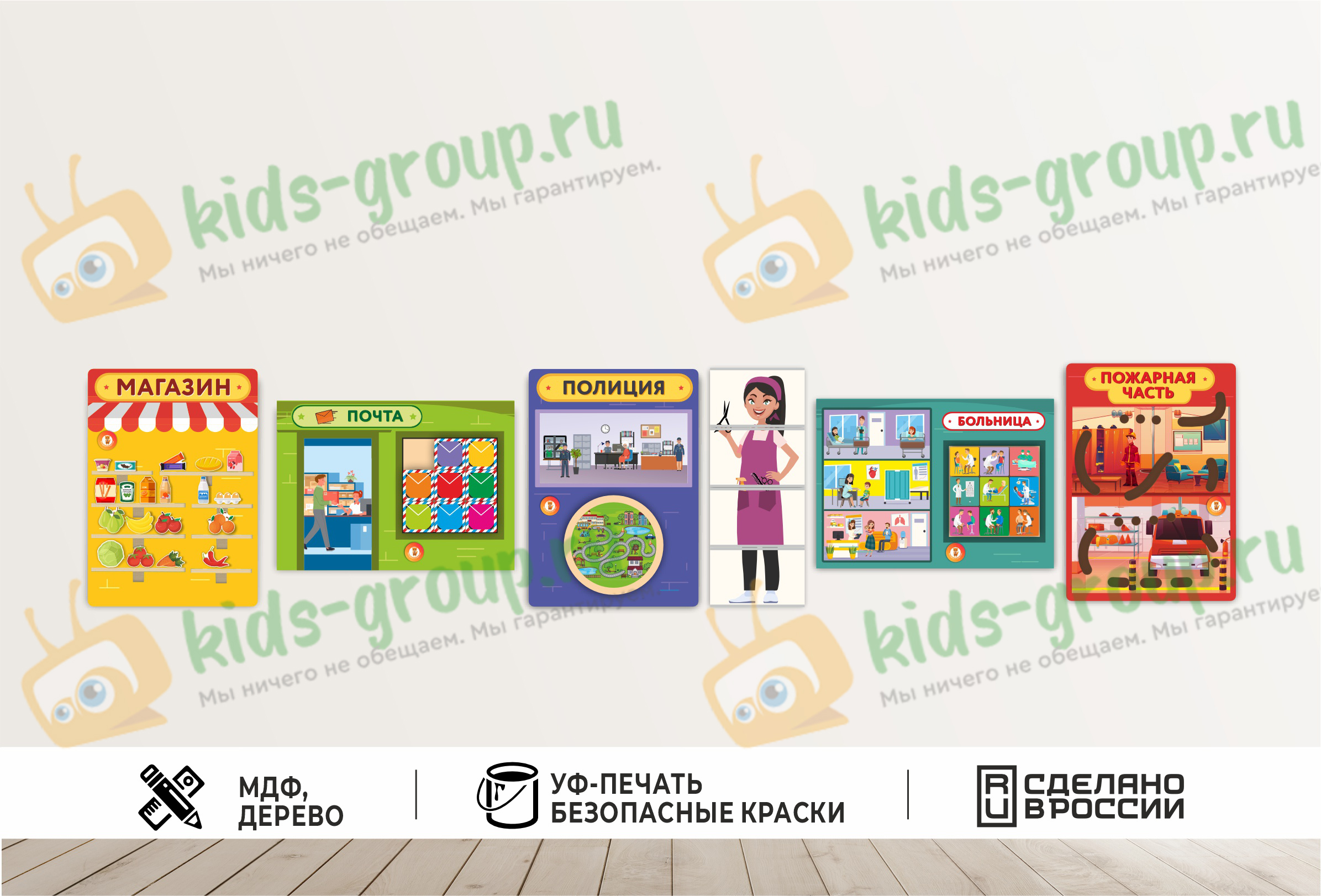 Бизиборд Больница, Бизиборд Полицейский участок, Бизиборд Пожарная часть, Бизиборд Почта, Бизиборд Магазин,