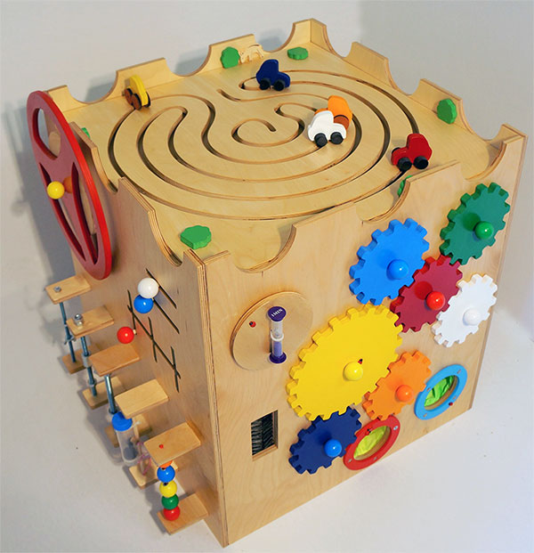 Игровой куб с подвижными элементами для развития логики, мелкой моторики, творческих способностей и т.п. Выполнен из дерева. Размер 600х600х600 мм. Существуют различные варианты граней, которые могут быть выбраны Заказчиком и скомпонованы в куб. Возможно, также, изготовление под заказ.