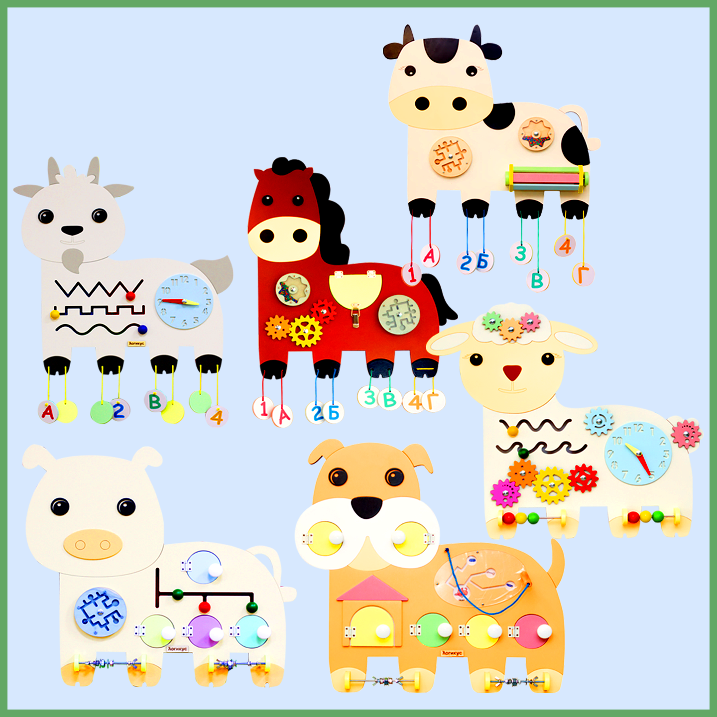 Целая ферма из бизибордов для изучения домашних животных для детей от 3 до 7 лет! Важная составляющая в занятиях по изучению окружающего мира у дошкольников — знакомство с животными. Серия бизибордов «Домашние животные» — это наглядный материал, с которым дети могут играть самостоятельно и заниматься с педагогом.