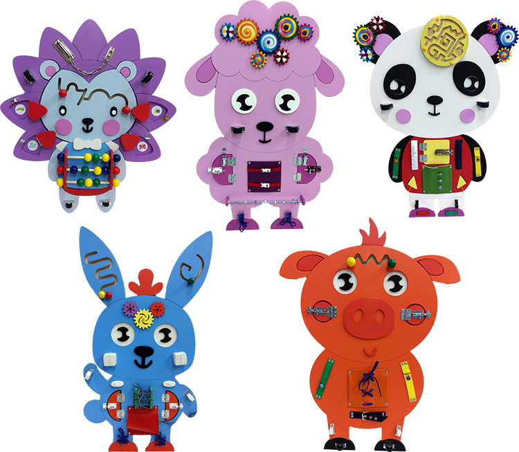 Набор из 5 дидактических панелей в виде симпатичных зверушек. Красочные разноцветные бизиборды с развивающими элементами для развитии концентрации внимания, мелкой моторики, творческого мышления. Отлично подойдут и в качестве декоративного украшения игровых уголков и детском саду или развивающем центре.