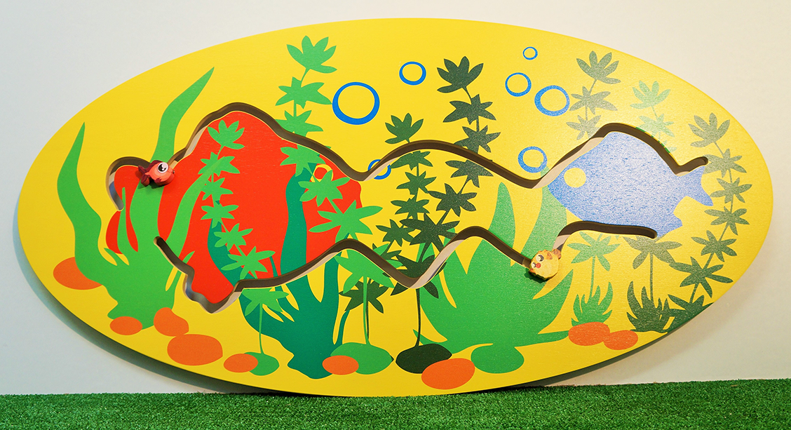 Настенная дидактическая панель Рыбки / Аквариум. Качественная фотопечать, 2 лабиринта с подвижными развивающими игрушками. Экологические чистые материалы.