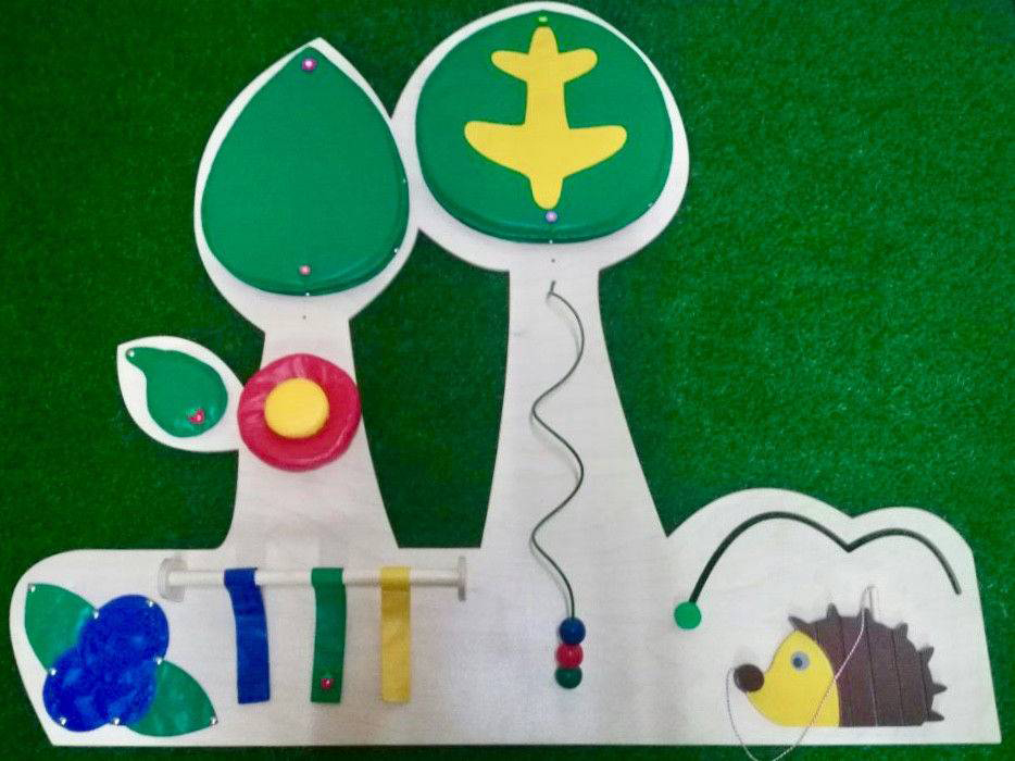 Этот элемент декора помещения служит не только для оформления стен, но и для развития мелкой мотрики рук , двигательной и зрительной координации, развития тактильных ощущений и изучения цветов.