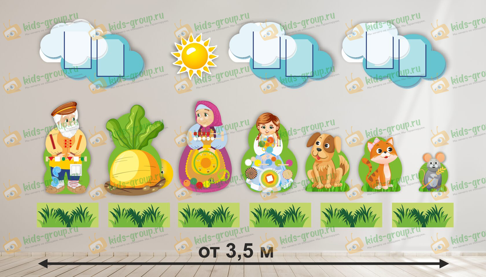 Рекреационная зона " СКАЗКА РЕПКА" подходит для обустройства развивающей предметно-пространственной среды (РППС) и рекреационно-образовательных зон (РОЗ) для детей младших групп детского сада. Разнообразное, яркое и информационно-насыщенное содержание бизибордов этой серии поможет малышам, как в адаптационный период, так и в остальное время пребывания в детском саду.