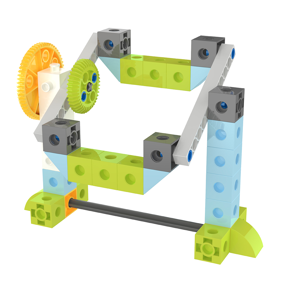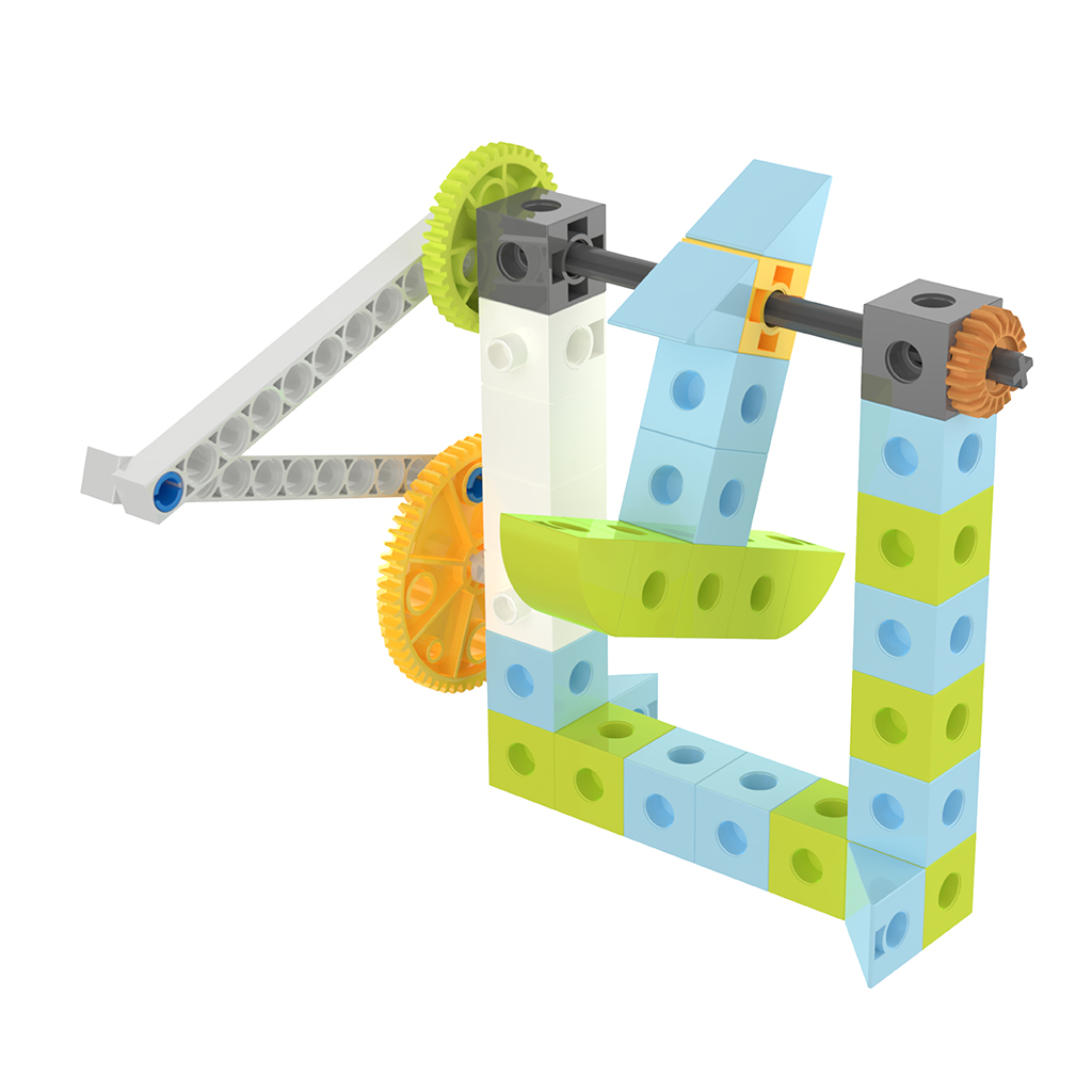 В комплект входит компактный электромотор, который легко соединяется с кубиками . Моторчик питается от одной батарейки AAA (не входит в комплект) и позволяет ребёнку экспериментировать с различными видами движения: вращением, покачиванием, подъёмом и спуском. Благодаря этому дети могут самостоятельно исследовать, как работают разные механизмы и от чего зависит движение каждой конструкции.