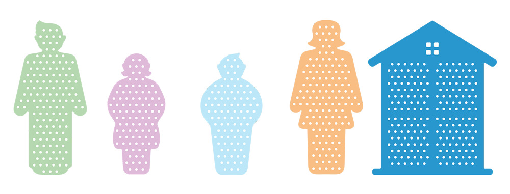 Размер, мм дом — 120*99 , папа — 120*56 , мама 120*56 , девочка 94*45 , мальчик 94*48