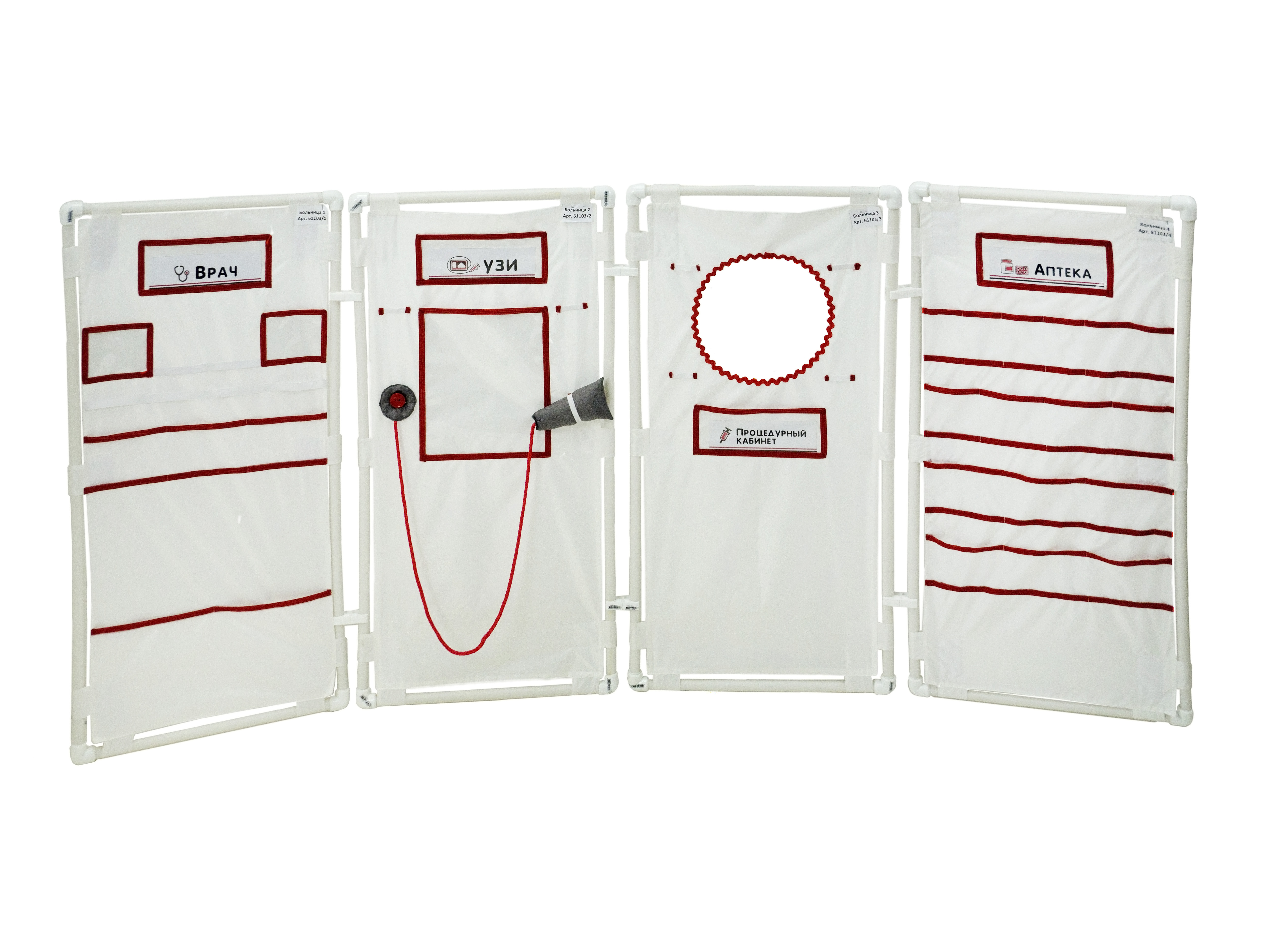 1. 4 накидки, каждая пристегивается к ширме с помощью липучек, нашитых на ткань.