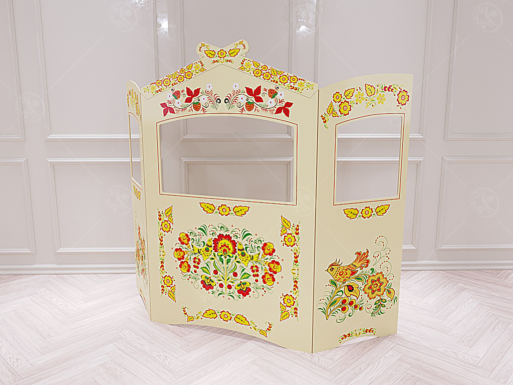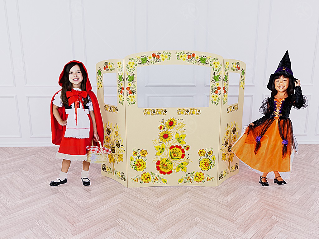 Ширма для кукольного театра Хохлома бежевая (Напольная)