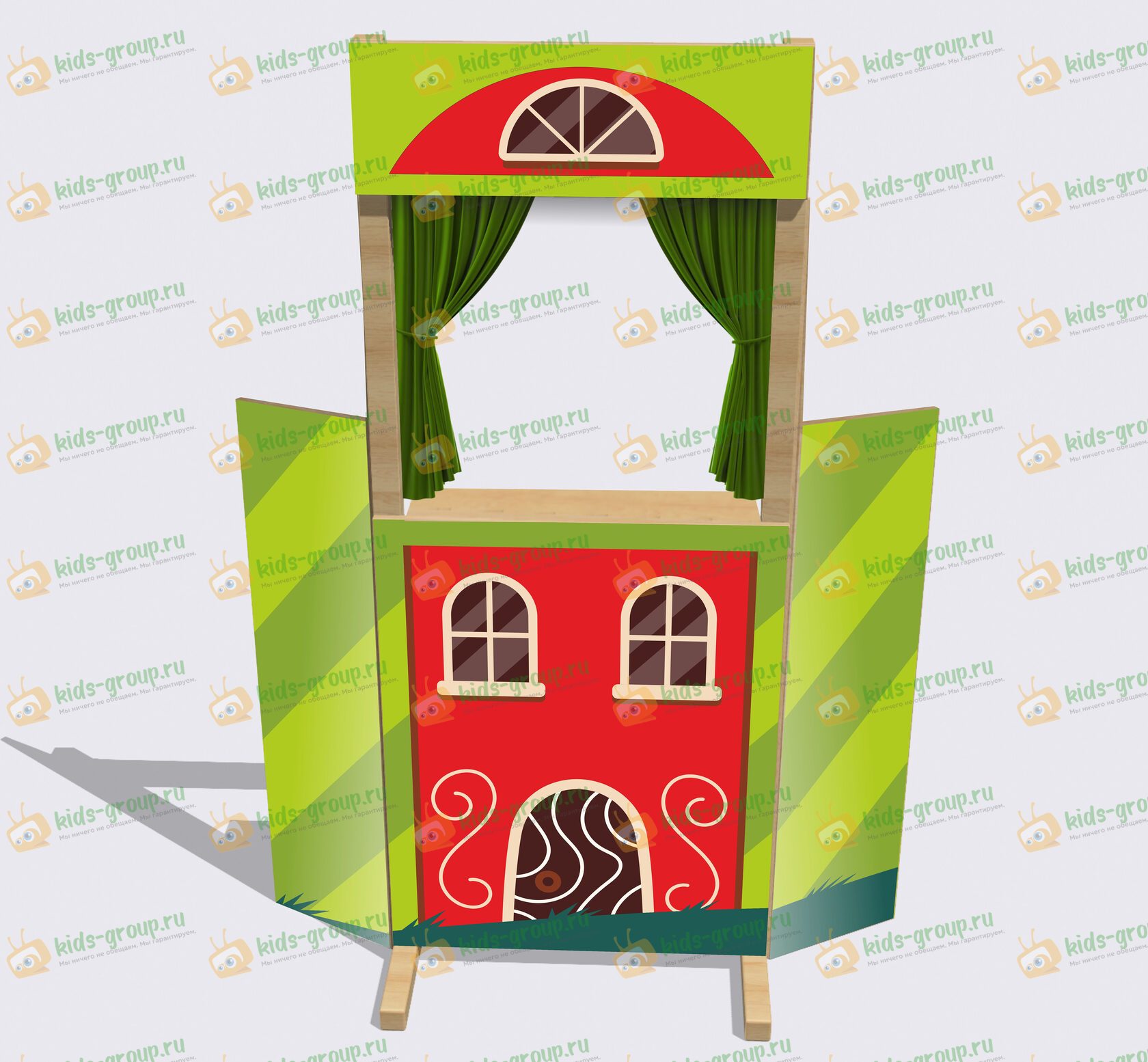 Качественная и надежная ширма для кукольного театра в детском саду. Материал: березовая фанера высшего сорта и массив дерева. Рисунок нанесен методом прямой УФ печати по дереву, яркий, не выцветет и не сотрется со временем. Мы используем безопасные краски и лаки.