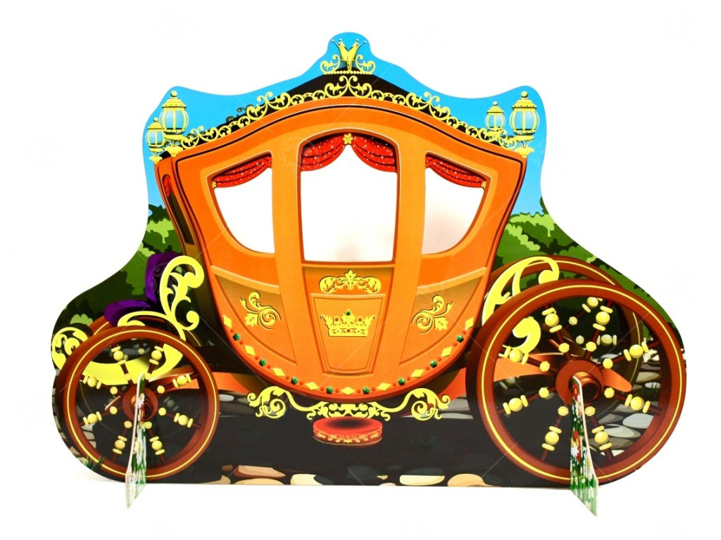 Театральная декорация "Карета" выполнена из МДФ, с нанесением полноцветного рисунка с двух сторон. Высота декорации 1,25м, ширина - 1,75м.
