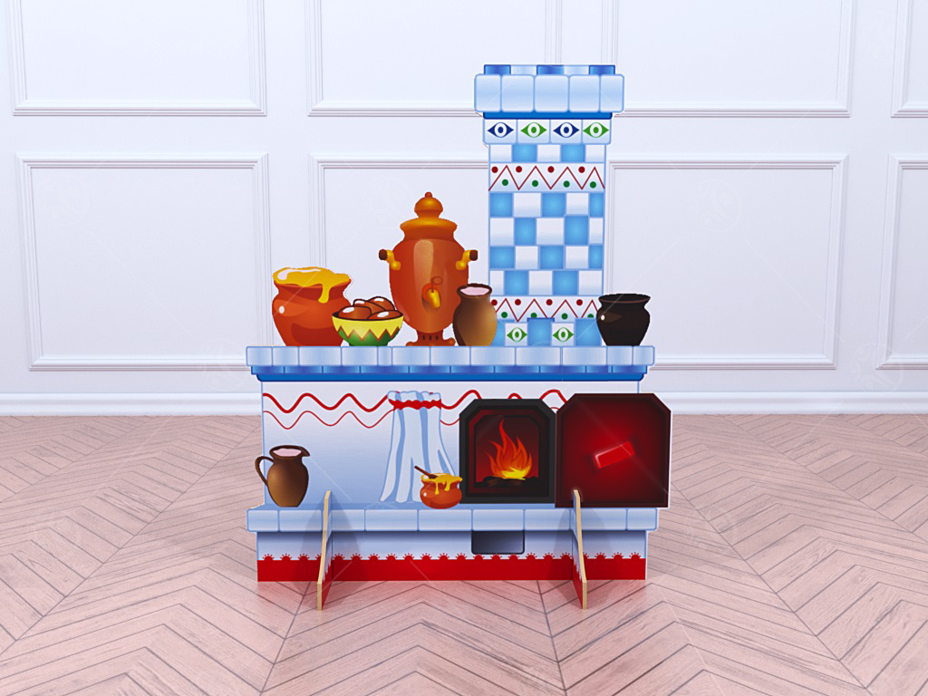 Театральная декорация "Печка" выполнена из МДФ, с нанесением полноцветного рисунка с двух сторон. Высота декорации 0,8м, ширина - 0,67м. Декорация "Печка" подойдет в качестве дополнения к любому празднику.