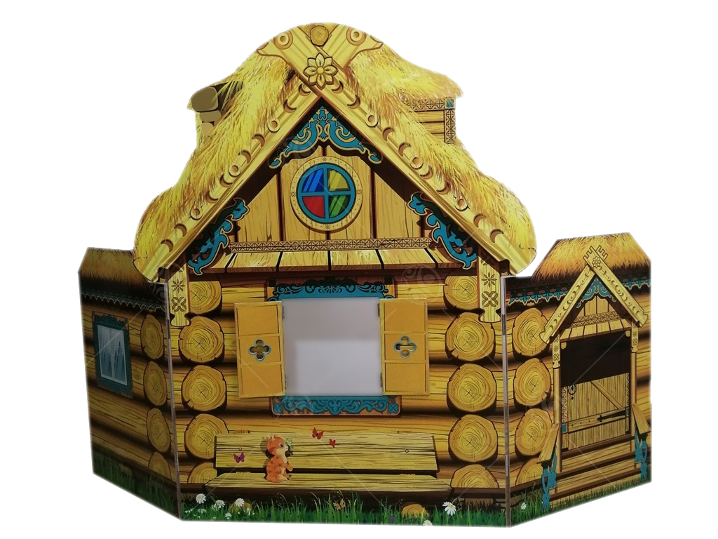 Театральная декорация "Русская изба" (внутри-снаружи) выполнена из МДФ, с нанесением полноцветного рисунка с двух сторон. Высота декорации 1,5м, ширина центральной створки 1,2м., в избе есть окно с открывающимися ставнями. Декорация "Русская изба" удачно впишется в постановку любой русско-народной сказки.
