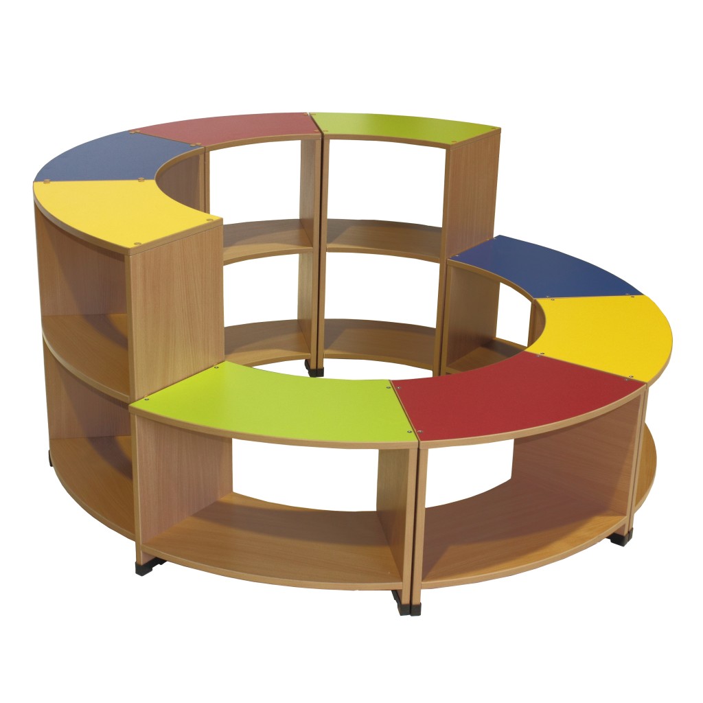 Стол-трансформер (8 сегментов). Выполнен из ламинированной ДСП (ЛДСП) 16 мм, обрамлены кантом ПВХ 2 мм, все углы закруглены. Боковые элементы имеют полимерные подпятники, предотвращающие повреждение напольных покрытий. Цвет на выбор.