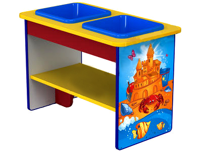Центр воды и песка прямоугольный. Выполнен из ламинированной ДСП (ЛДСП) 16 мм, обрамлены кантом ПВХ 2 мм, все углы закруглены. Боковые стенки имеют полимерные подпятники, предотвращающие повреждение напольных покрытий. Центр воды и песка необходимый атрибут в природном уголке любого детского сада. На столешнице прямоугольной формы имеются две ёмкости для проведения опытов с песком и водой или для мытья игрушек, купания кукол, стирки детского белья. Цвет на выбор. Возможно изготовление с фотопечатью.