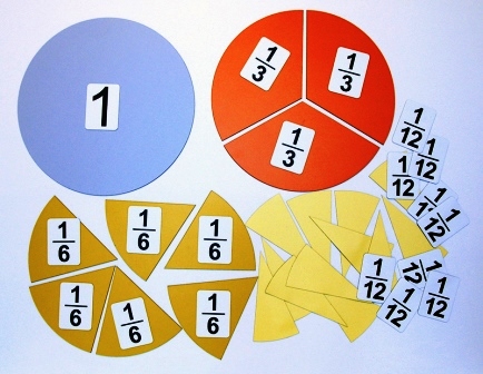 22 белых карточки с указанием величины дроби (от 1 до 1/12).