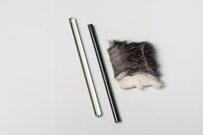 Набор состоит из двух цилиндрических палочек диаметром около 10 мм и длиной около 200 мм. При натирании стеклянной палочки лоскутом шелка на ней накапливается положительный заряд. Отрицательный заряд накапливается на пластиковой палочке при натирании ее лоскутом натурального меха.