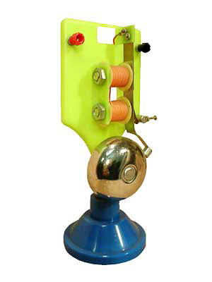 Звонок смонтирован на пластмассовой панели так, что хорошо видны все детали звонка. Для регулировки амплитуды колебания ударника звонка предусмотрен винт с контргайкой. Панель со звонком закреплена на подставке. Для проведения демонстрации необходим источник постоянного тока, выключатель однополюсный и комплект соединительных проводов.