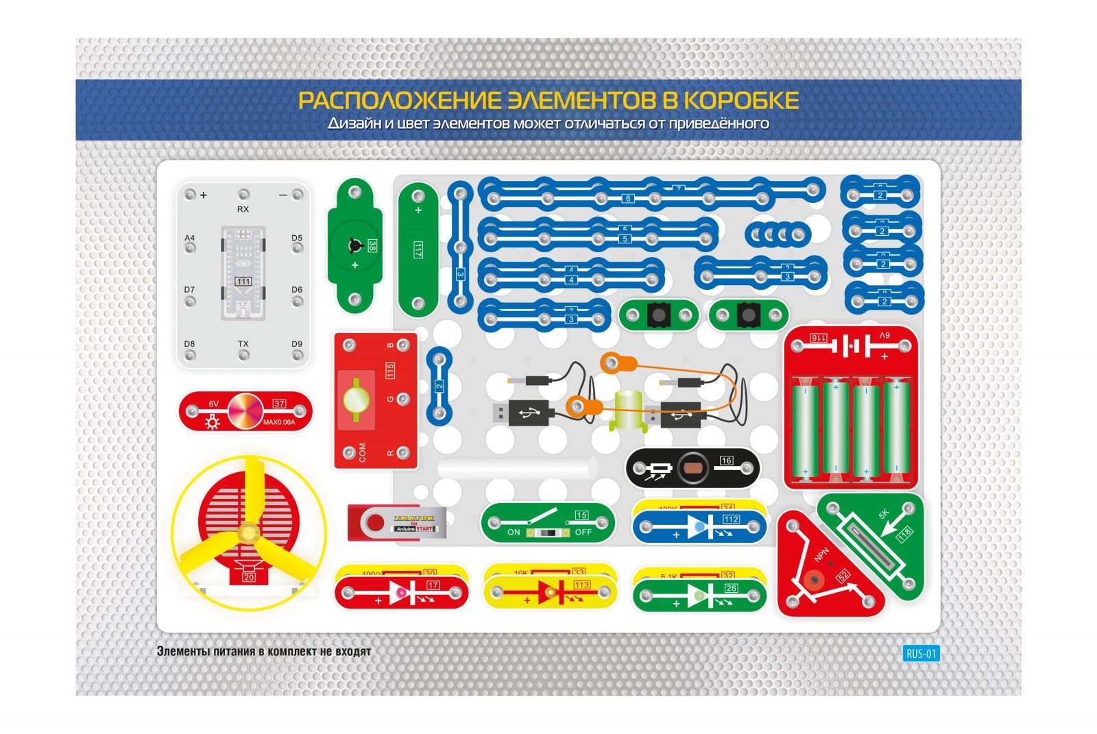 С данным набором вы научитесь работать с Arduino — модулем, содержащим микроконтроллер из популярного семейства AVR, который можно запрограммировать на четырех языках: GRAPH Z; C++; Scratch; Python.