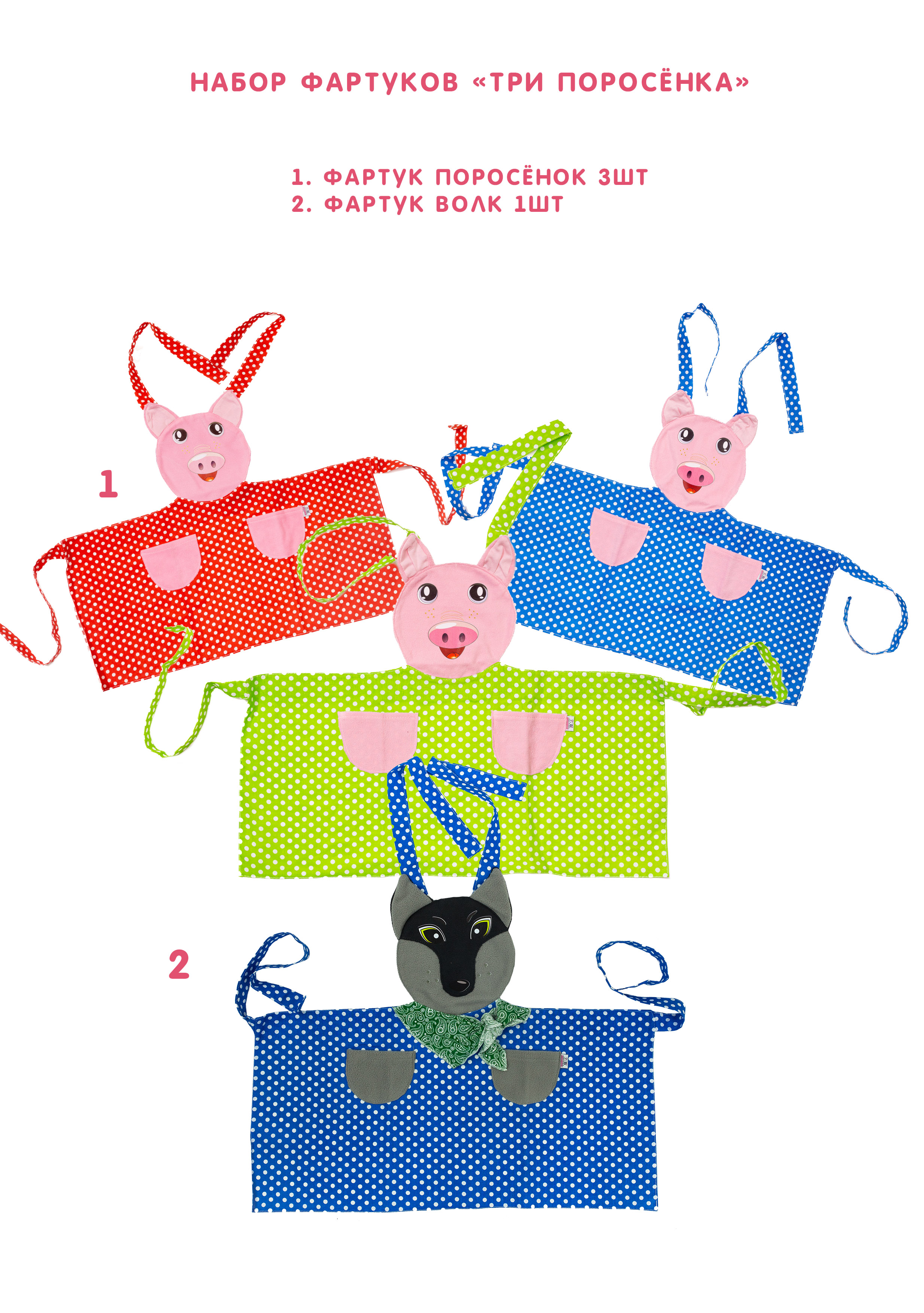 Набор фартуков - Три поросенка (4 фартука)