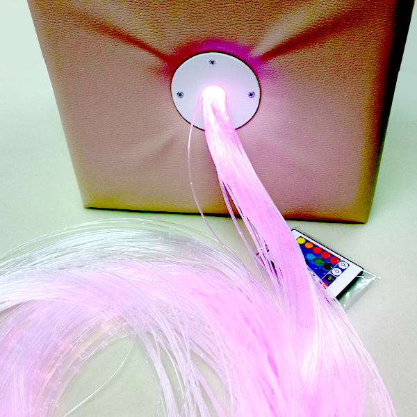 Фибероптические нити "Звездый дождь" - это пучок фибероптических нитей, по всей длине которых лазерным способом нанесены насечки. В местах этих насечек нить светится. Расстояние между насечками - 3-5см, что позволяет создавать эффект горящей нити по всей длине.