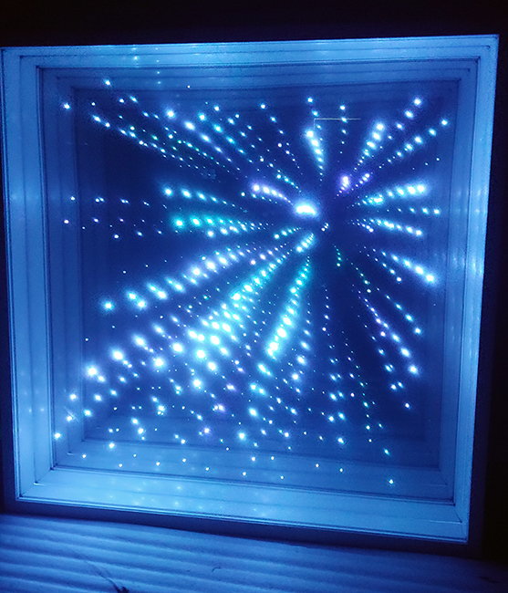Настенное панно для темной комнаты с имитацией бесконечного звездного неба. Завораживающая картина которая кажется глубоким окном в скопление сотен и тысяч звезд. Эффект достигается за счет вплетенных фибероптических волокон и специализированного источника света с возможностью точечно убавлять и прибавлять подсветку зон в хаотичном порядке.
