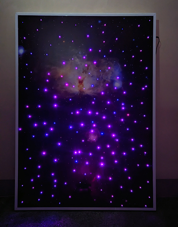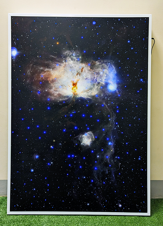 Панель звездное небо с планетами с полноценной фотопечатью и вплетенными фибероптическими волокнами. Красочная панель подойдет как для светлых, так и для темных помещений.