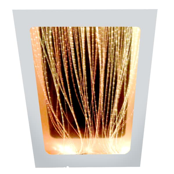Безопасное зеркало с занавесью из фибероптических волокон бокового свечения. Завораживающий эффект мерцания свисающих нитей различными цветами на фоне зеркала.