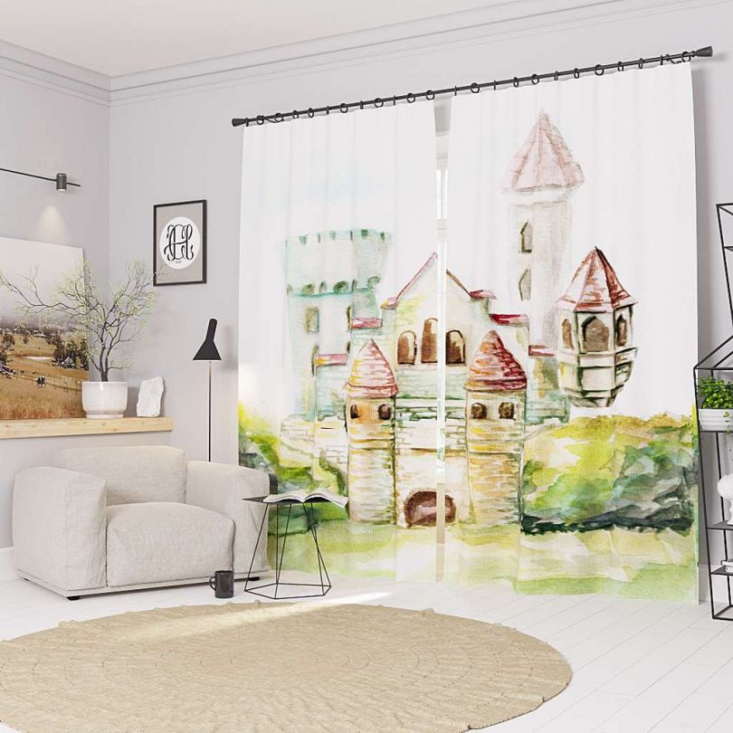 Печать на шторах односторонняя. Иллюстрации к товарам на сайте представлены на примере изделий с размерами высотой 270 см и шириной 150 см на одно полотно (общая ширина изделия из двух полотен - 300 см). При зказе изделий других размеров может измениться пропорция рисунка. Кадрирование рисунка к выбранным Вами размерам изделия производится на усмотрение дизайнера. Если Вам важно согласовать макет - сообщите об этом при оформлении заказа. Крепление: Шторная тесьма - Машинная стирка при 30 °С