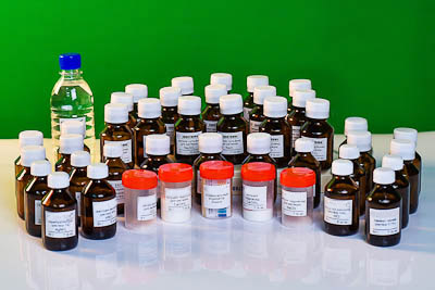 реактивы (44 различных веществ, используемых для составления комплектов реактивов при проведении экзаменационных экспериментов по курсу школьной химии): алюминий (гранулы) – 10 г, железо (стружка) – 20 г, цинк (гранулы) – 20 г, медь (проволока) – 10 г, оксид меди II (порошок) – 10 г, оксид магния (порошок) – 10 г, оксид алюминия (порошок) – 10 г, оксид кремния (порошок) – 10 г, соляная кислота (раствор 14 %) – 50 г, серная кислота (раствор 44 %) – 50 г, гидроксид натрия (для приготовления раствора) – 15 г, гидроксид кальция (для приготовления раствора) – 25 г, хлорид натрия (для приготовления раствора) – 5 г, хлорид лития (для приготовления раствора) – 5 г, хлорид кальция (для приготовления раствора) – 5 г, хлорид меди II (для приготовления раствора) – 5 г, хлорид алюминия (для приготовления раствора) – 10 г, хлорид железа III (для приготовления раствора) – 5 г, хлорид аммония (для приготовления раствора) – 5 г, хлорид бария (для приготовления раствора) – 5 г, сульфат натрия (для приготовления раствора) – 5 г, сульфат магния (для приготовления раствора) – 5 г, сульфат меди II (для приготовления раствора) – 5 г, сульфат железа II (для приготовления раствора) – 5 г, сульфат цинка (для приготовления раствора) – 5 г, сульфат аммония – 5 г, нитрат натрия – 5 г, карбонат натрия (для приготовления раствора) – 5 г, гидрокарбонат натрия (для приготовления раствора) – 5 г, фосфат натрия (для приготовления раствора) – 15 г, бромид натрия (для приготовления раствора) – 5 г, иодид натрия/калия (для приготовления раствора) – 5 г, нитрат бария (для приготовления раствора) – 5 г, нитрат кальция (для приготовления раствора) - 5 г, нитрат серебра (раствор 10 %) – 50 г, аммиак (раствор 12 %) – 50 г, пероксид водорода (раствор 12 %) – 50 г, метилоранж (раствор 0,1 %) – 50 г, лакмус синий (раствор 0,1 %) – 50 г, фенолфталеин (раствор 0,1 %) – 50 г, хлорид магния – 5 г, сульфат алюминия – 5 г, универсальный индикатор (бумага) – 1 набор, дистиллированная вода – 330 г.