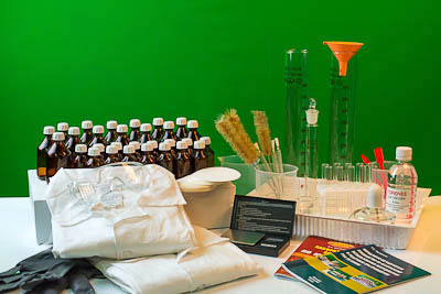 весы лабораторные электронные до 200 г – 1 шт., спиртовка лабораторная – 1 шт., воронка коническая – 1 шт., палочка стеклянная – 1 шт., пробирки ПХ-14 – 10 шт., стаканы высокие с носиком ВН-50 мл с меткой – 2 шт., цилиндр измерительный 50 мл стеклянный, с притертой крышкой – 1 шт., штатив (подставка) для пробирок на 10 гнезд – 1 шт., зажим пробирочный – 1 шт., ложки-шпатели – 3 шт., набор флаконов для хранения растворов и реактивов (флаконы темного стекла 100 мл с пробкой и крышкой – 30 шт. (5 комплектов по 6 шт.), флаконы темного стекла 30 мл с пробкой и крышкой – 60 шт. (10 комплектов по 6 шт.)), цилиндры измерительные с носиком 500 мл – 2 шт., стаканы высокие 500 мл – 3 шт., набор ершей для мытья посуды (ерши для мытья пробирок – 3 шт., ерши для мытья колб – 3 шт.), халаты белые х/б – 2 шт., перчатки резиновые химически-стойкие – 2 пары, защитные очки – 1 шт., фильтры бумажные Ø 9 см (100 шт.) – 1 уп.,горючее для спиртовок (0,33 л) – 1 уп., раздаточный лоток – 1 шт., учебное пособие "Нормативно-методическое руководство по безопасному использованию оборудования и реактивов при проведении ГИА по химии" (автор Т.С. Назарова – брошюра, 40 страниц – печать офсетная, обложка полноцветная) – 1 шт., учебное пособие "Лабораторные опыты по курсу химии" (автор Л. Е. Богданова - брошюра, 56 страниц - печать офсетная, обложка полноцветная) – 1 шт., руководство по эксплуатации – 1 шт.