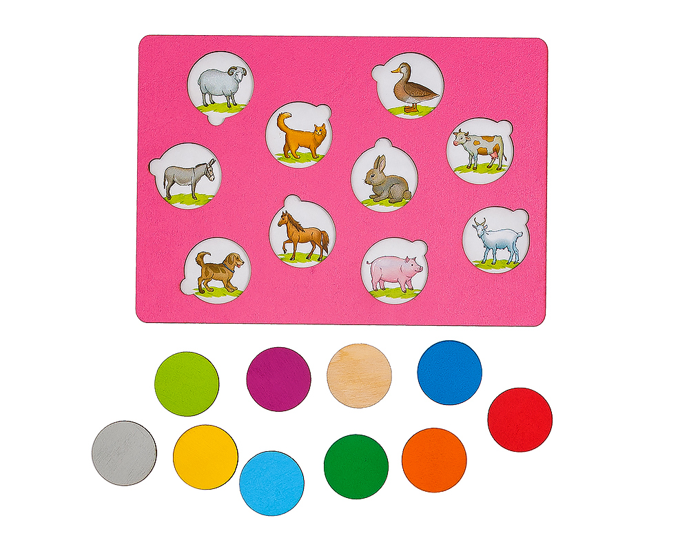 Игра для тренировки мелкой моторики и развития речи. Форма для окошек выбрана неслучайно - кружки легче всего вставляются в отверстия, что очень удобно для детей раннего возраста.