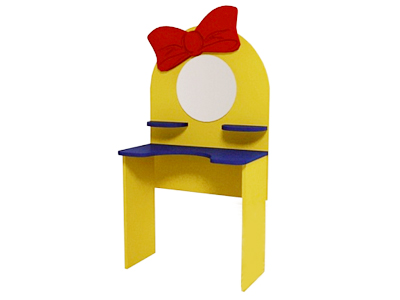 Трюмо «Бантик». Выполнено из ламинированной ДСП (ЛДСП) 16 мм, МДФ обрамлено кантом ПВХ 2 мм, все углы закруглены. Оригинальное и красочное трюмо для сюжетно-ролевых игр, поможет детям развить творческие навыки, разнообразить фантазию, воспитать стремление к опрятности и чистоте, закрепить знания о профессии парикмахера. Цвет на выбор. Возможно изготовление с фотопечатью.