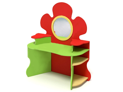 Трюмо «Цветок». Выполнено из ламинированной ДСП (ЛДСП) 16 мм, МДФ обрамлено кантом ПВХ 2 мм, все углы закруглены. Задняя стенка выполнена в форме цветка, опоры - фигурные изогнутые ножки с закругленными полочками для всех необходимых мелочей. Оригинальное и красочное трюмо для сюжетно-ролевых игр, поможет детям развить творческие навыки, разнообразить фантазию, воспитать стремление к опрятности и чистоте, закрепить знания о профессии парикмахера. Цвет на выбор. Возможно изготовление с фотопечатью.