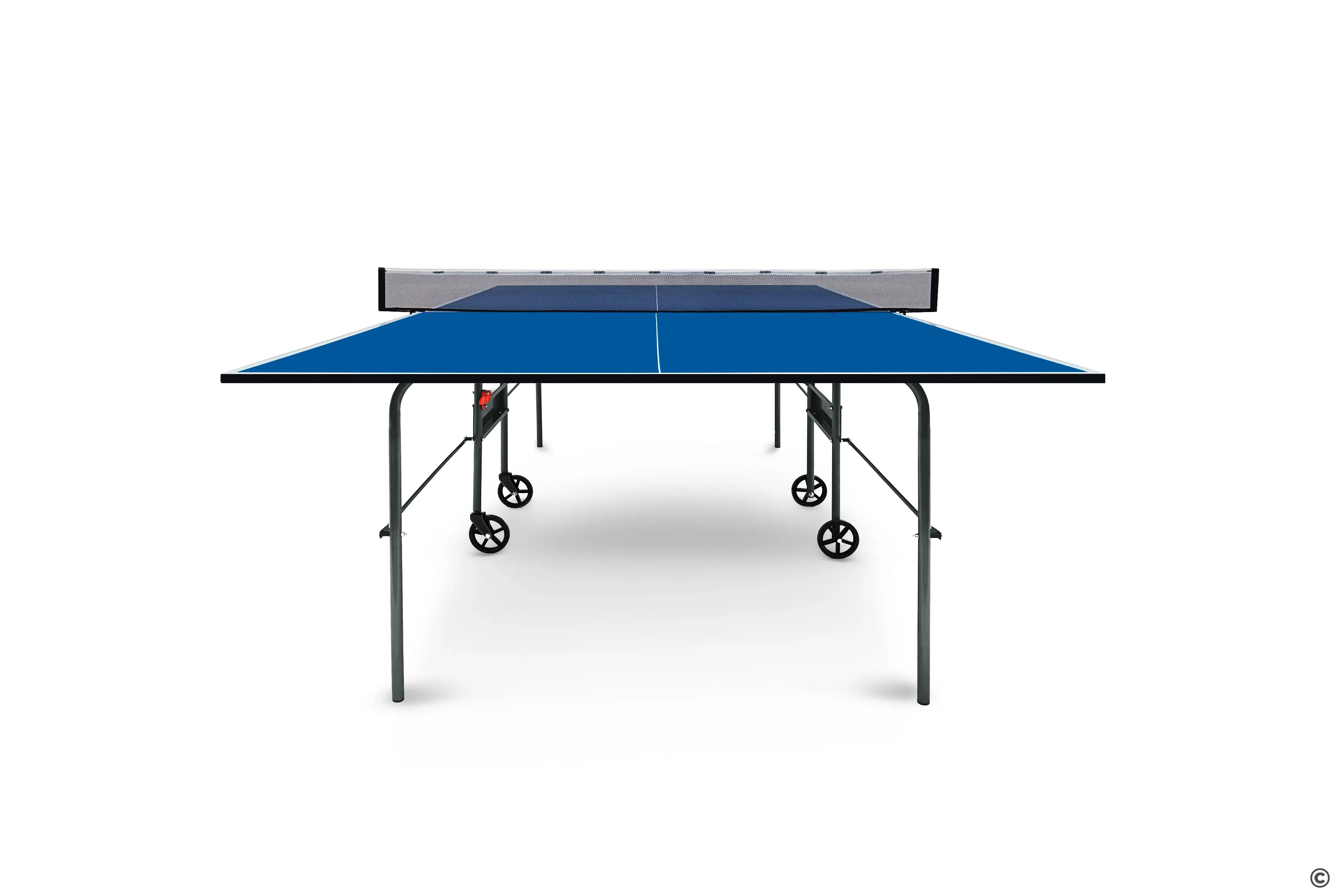 Размеры стола соответствуют международному стандарту. Конструкцией предусмотрена возможность одиночной игры. Удобная система трансформации позволяет легко сложить и разложить стол. Модель маневренная,оборудована встроенной сеткой, не требующей демонтажа при складывании. Стол занимает минимум пространства при хранении.