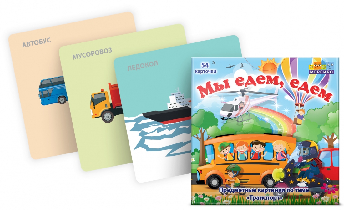 В комплект входят 51 карточка с изображениями транспортных средств и 3 карточки с разными городами. На карточках по лексической теме изображены разные виды транспорта. Картинки яркие и понятны детям.