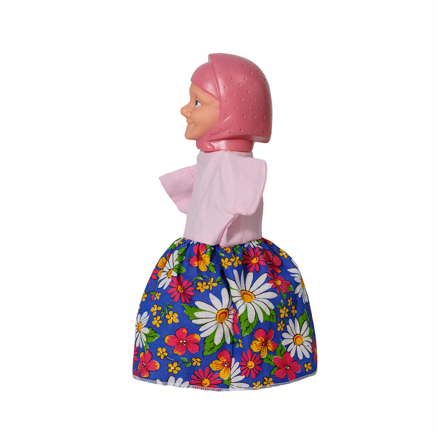 Размер 30 см. Голова изготовлена из безопасного пвх-пластизоля, роспись лица аэрографом и вручную. Костюм состоит из х\б ткани с отделкой тесьмой и кружевом. На голове платочек.